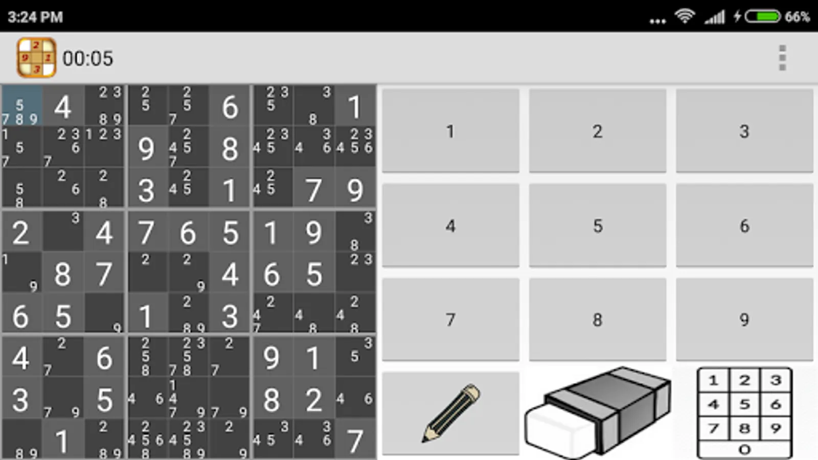 Note mode- Suodoku supports making notes while playing . You can easily switch between notes and sudoku keyboard.