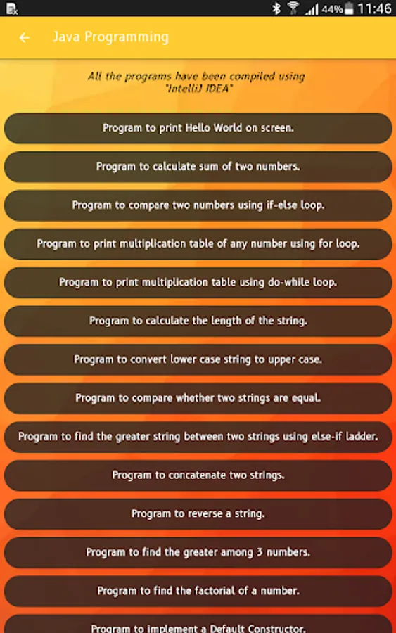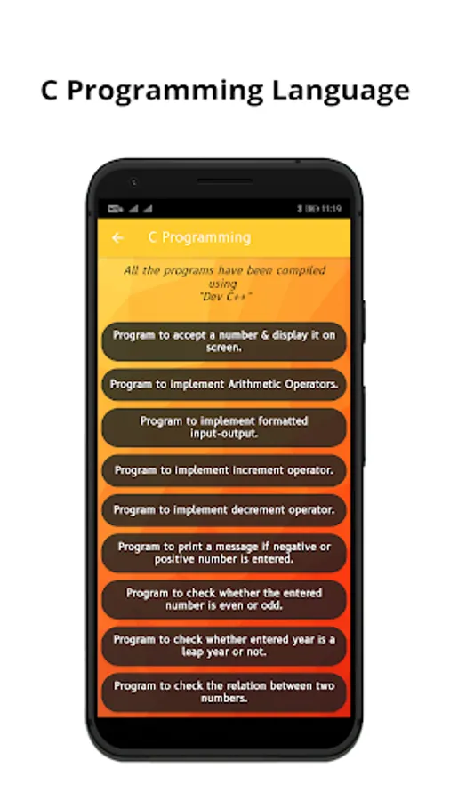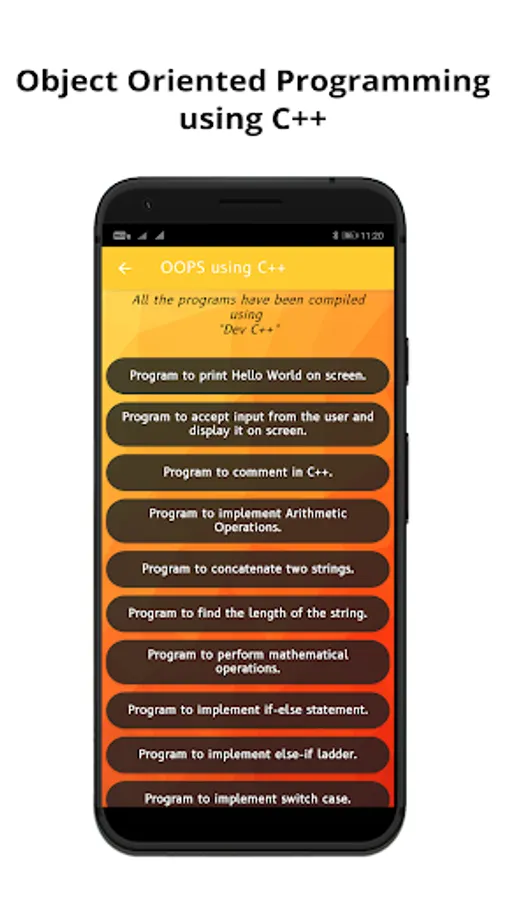 All these languages will help you in building a strong base in programming. With the help of this app, you can get access to programs even before your professors teaches you. So, you can learn at your own pace, anywhere and everywhere.
