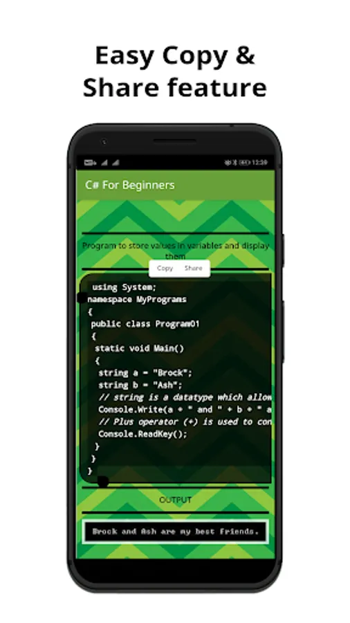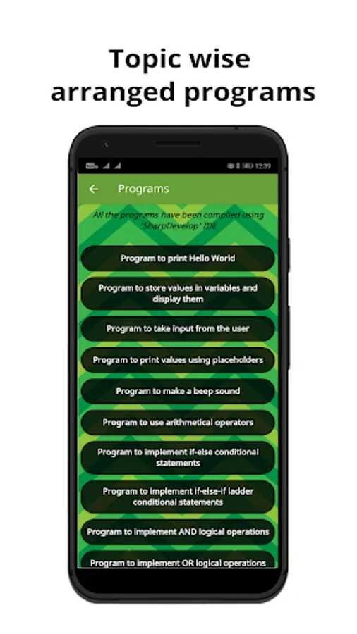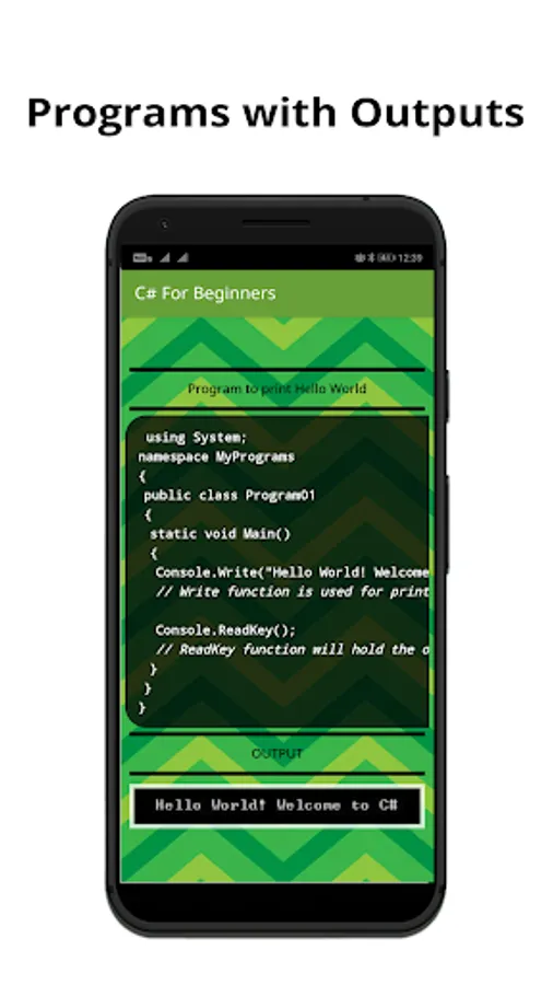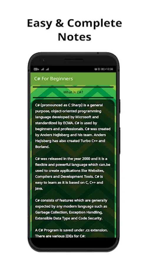 Learn today's most in-demand language C# on your mobile phone. With our app you'll be learn to code right away in almost no time at all. Most of our programs are explained with comments for better understandability.