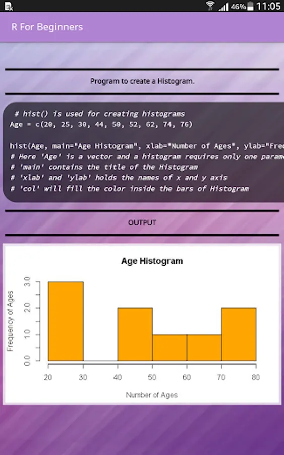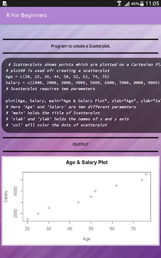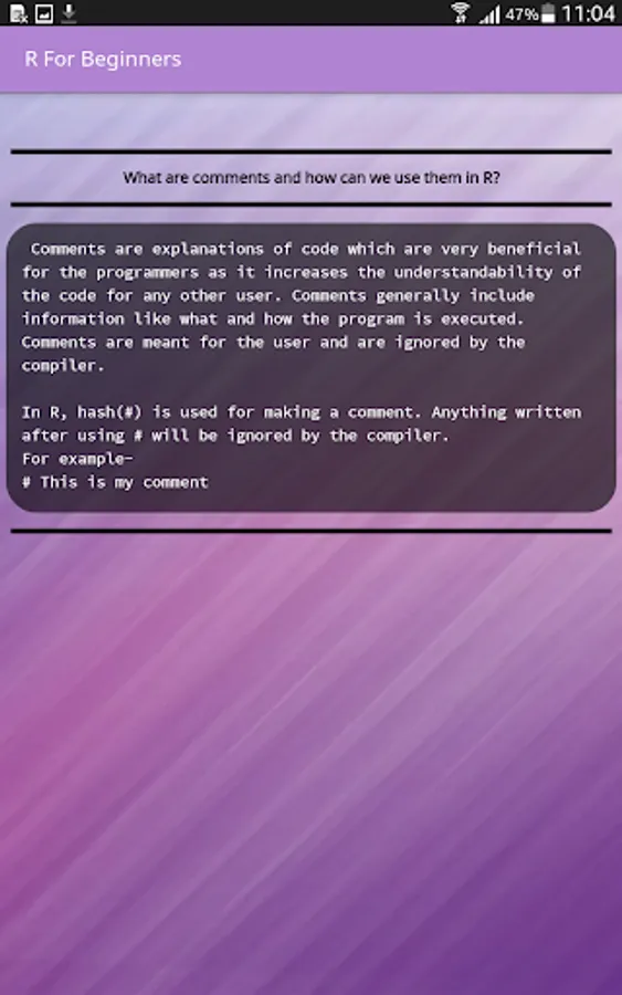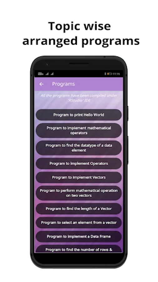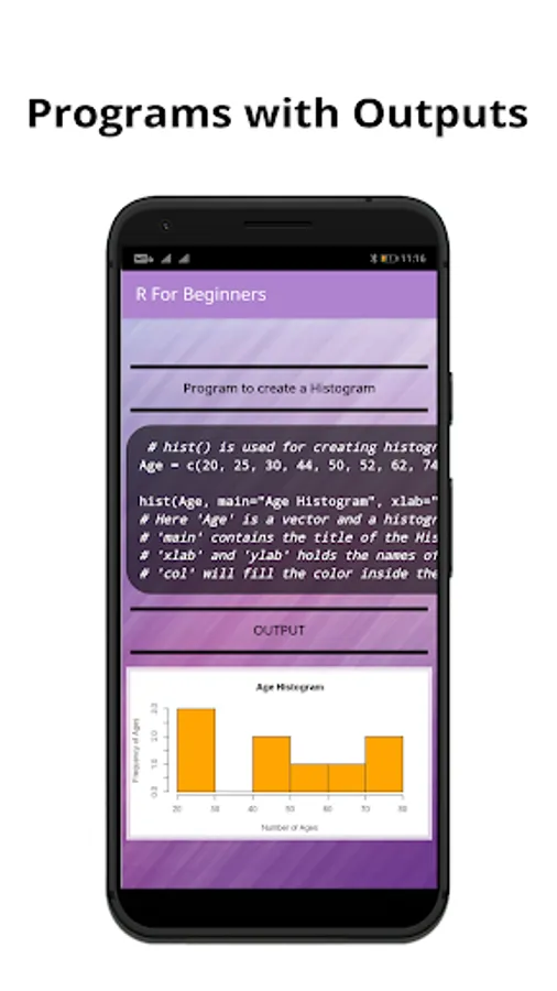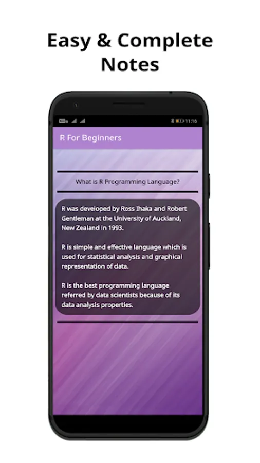 Learn today's one of the most in-demand language R directly from your mobile phone. With our app you'll be learn to code right away in almost no time at all. All of our programs are explained with comments for better understandability.