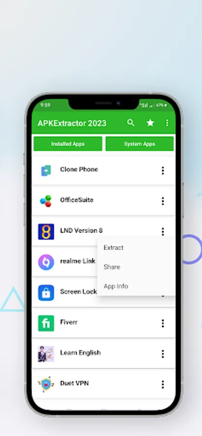 APKExtractor is a app which will extract your app into apk and you can share it to anyone by bluetooth, gmail or any other etc. it is very simple app just click on app and share or save apk .