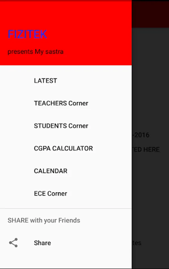 This application is for the students of Sastra university.This app allows the students to calculate their Internal marks,Cgpa.It also provide Notes and Study materials during Cia and Semester for the students of current II ECE.It contain the current month calendar,which allows the user to check the working and holidays.