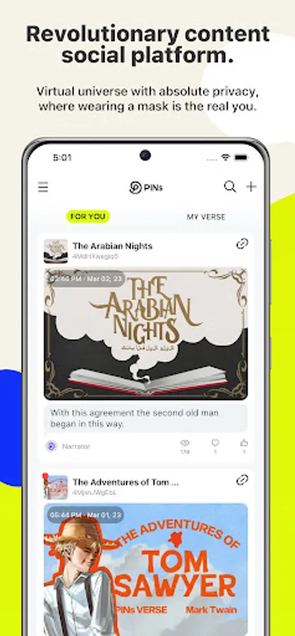 PINs is a content social network that uses multi-role-playing to create plot-driven metaverses and bring historical and cultural attributes to the community.
