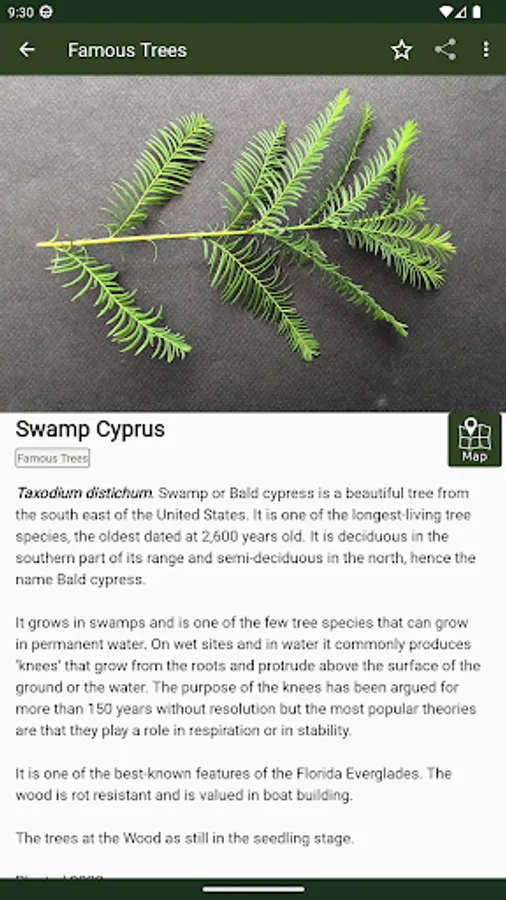 The App has interesting information about each species, including its origin, use throughout history, and folk law.