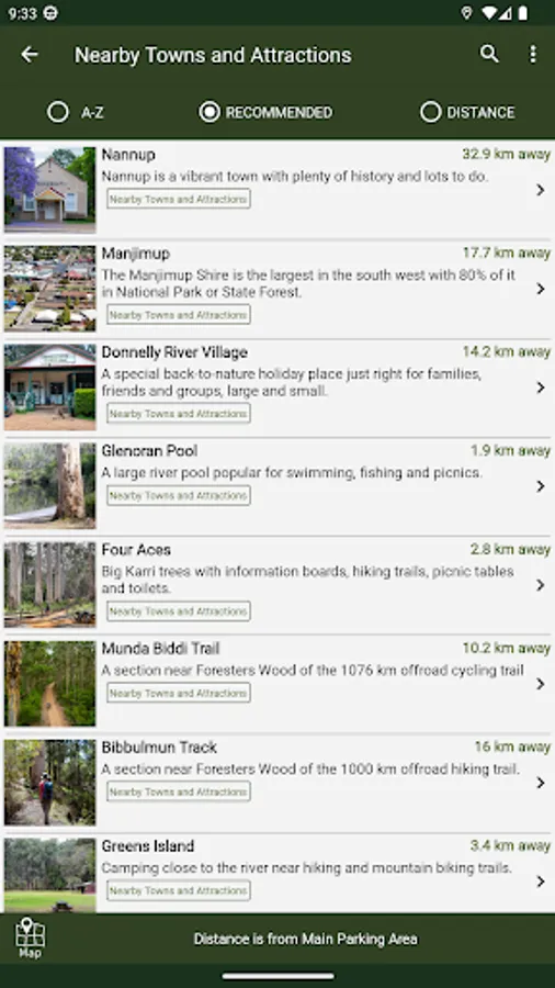 Species can be listed by common name or by distance from your position.