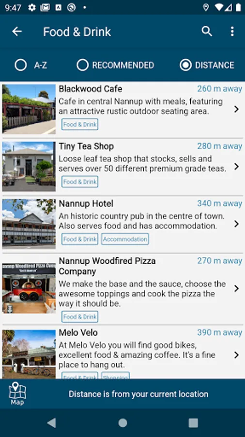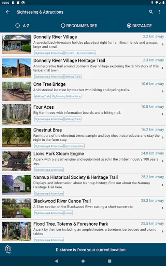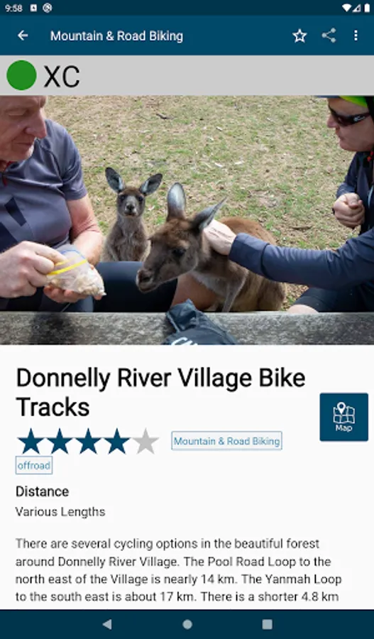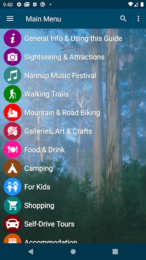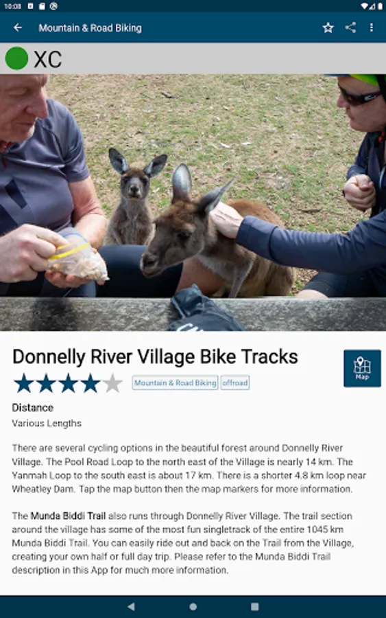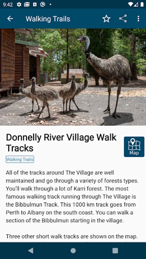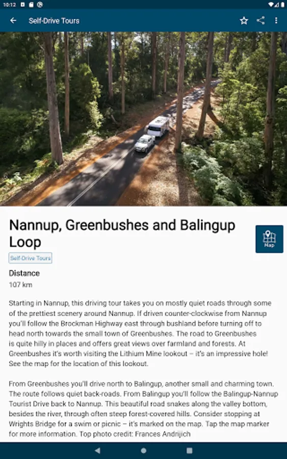 The App has beautiful photographs, and all information is clearly described and pin-pointed on the built-in maps so you can easily find your way around. Full maps of cycling and hiking tracks are also provided. The maps are very high resolution and work without data roaming, Wi-Fi connection, and internet. So the App is fast and won't cost you money. And mobile coverage black spots will not stop the App from working! Turn on your phone or tablet GPS from within the App and you will never get lost again finding all the fun places in and around Nannup.