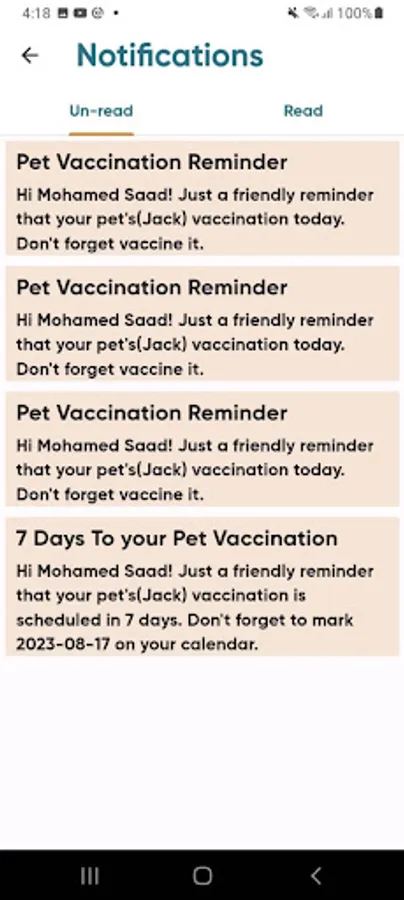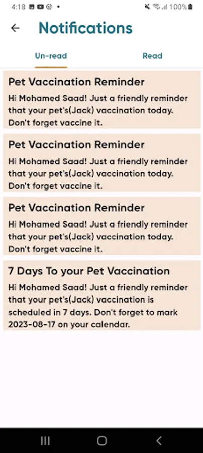 - Get Veterinary notifications.