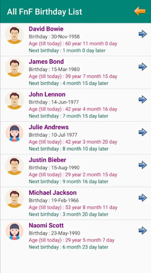 ► Save birth dates of your friends and families (FnF)
