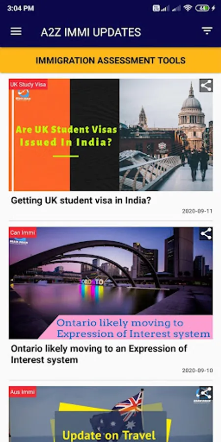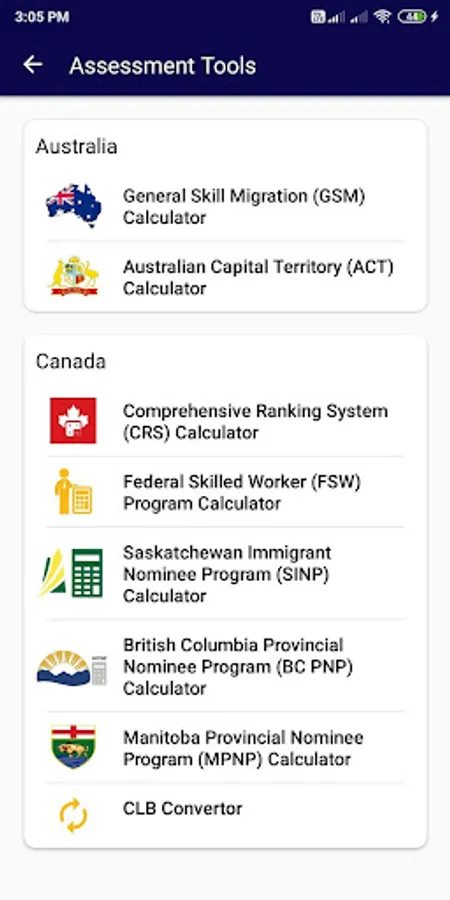 In the current version of the app, It also has much Immigration-related assessment and other tools