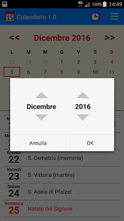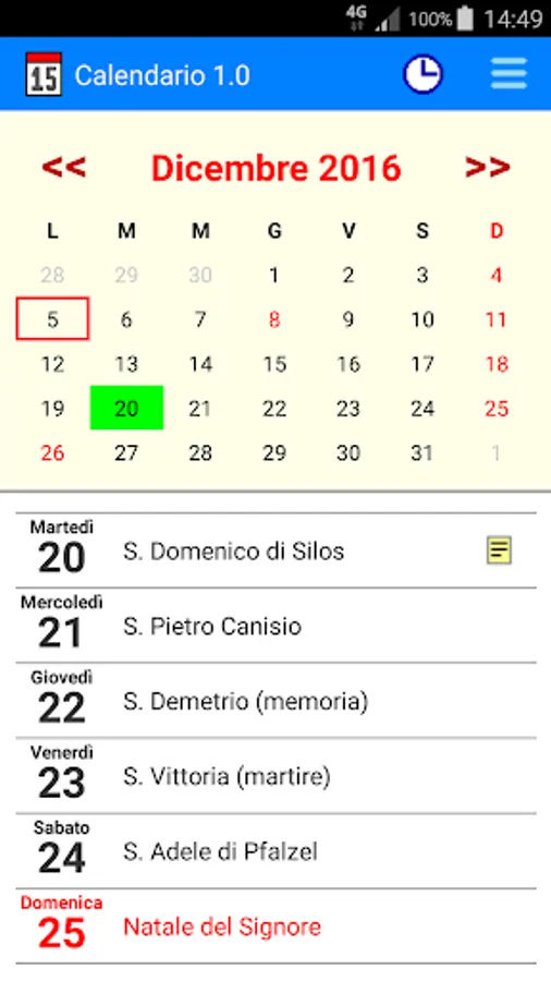 Calendar with name days and all holidays (Christmas, Easter, etc.).