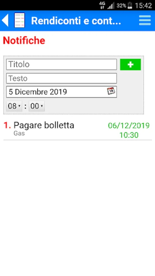 It is possible to create multiple reports and accounts, view them on the Web (www.interzeus.com/smartapps) and insert reminders (notifications) for a certain date and time.