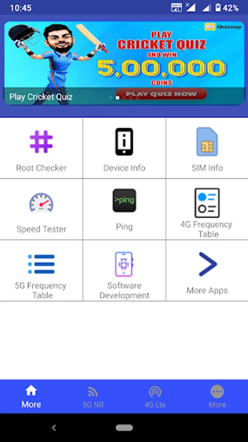 Also Add more 5G lte and 4g tools like Internet speed tester, Ping, and you can also see device info, Root checker.
