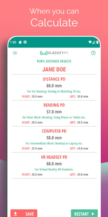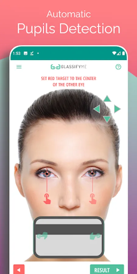 PD Meter App by GlassifyMe is the perfect tool to measure your Pupillary Distance (PD) quickly and accurately. Simply take a picture holding a standard sized card with the magnetic strip facing the camera and let us do the rest.