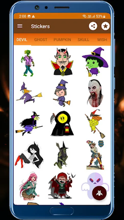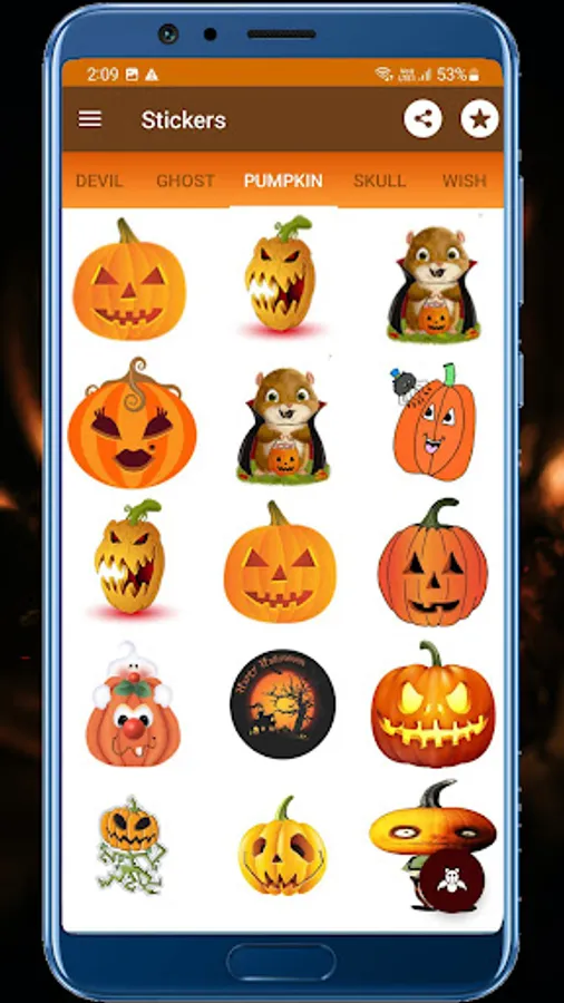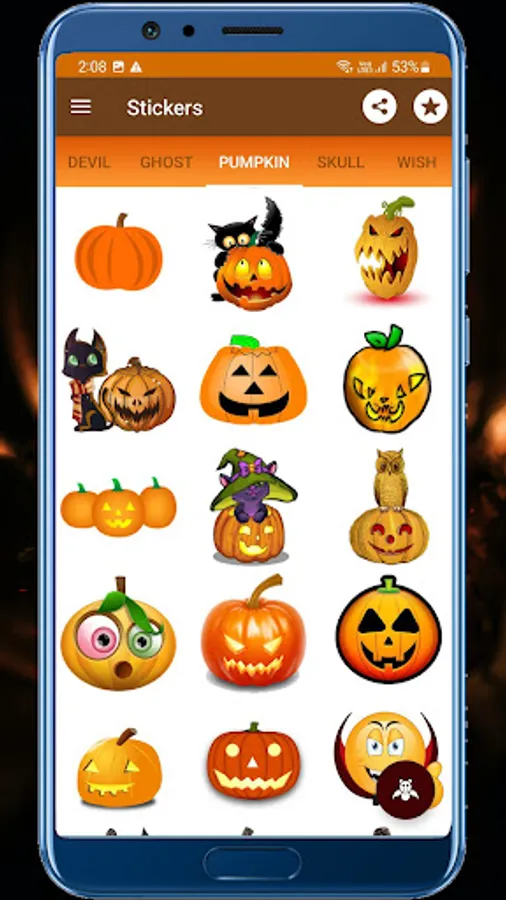 Download the new best Halloween stickers witch stickers, pumpkin stickers and animated stickers to your chat and express your celebration with loads of Halloween stickers.