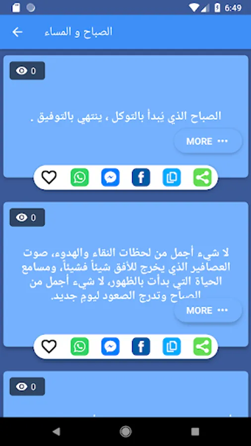 Our application contains funny anecdotes, thoughts of love, romance, marital, Islamic faith publications, and about life in the world, and what we forgot on Friday, and do not forget to renew your life with brothers, friendship, and life in which separation and sadness, and also we wrote about masterpieces of Arabic poetry, morning, evening, and Choose the most beautiful sayings of famous people about success and excellence, father and mother, daily dhikr, respect, appreciation, thanks and gratitude.