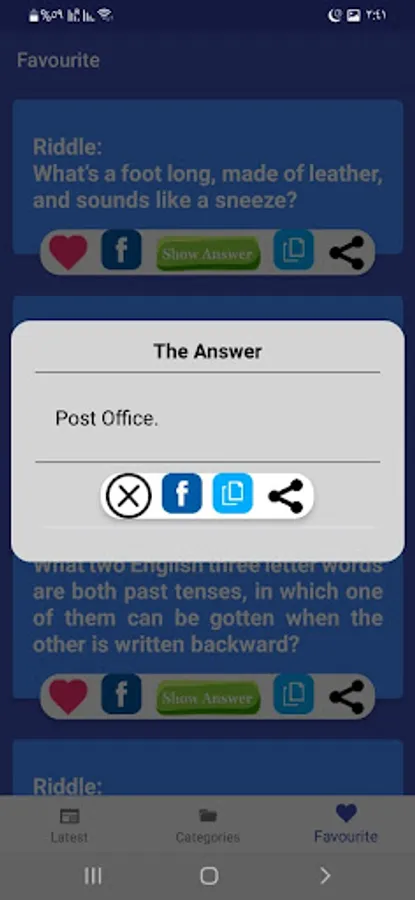 +Share Riddles in social media like on Facebook, Twitter, Whatsapp, Google+, Hangouts, Pinterest, Instagram, Email, SMS, MMS and many more...