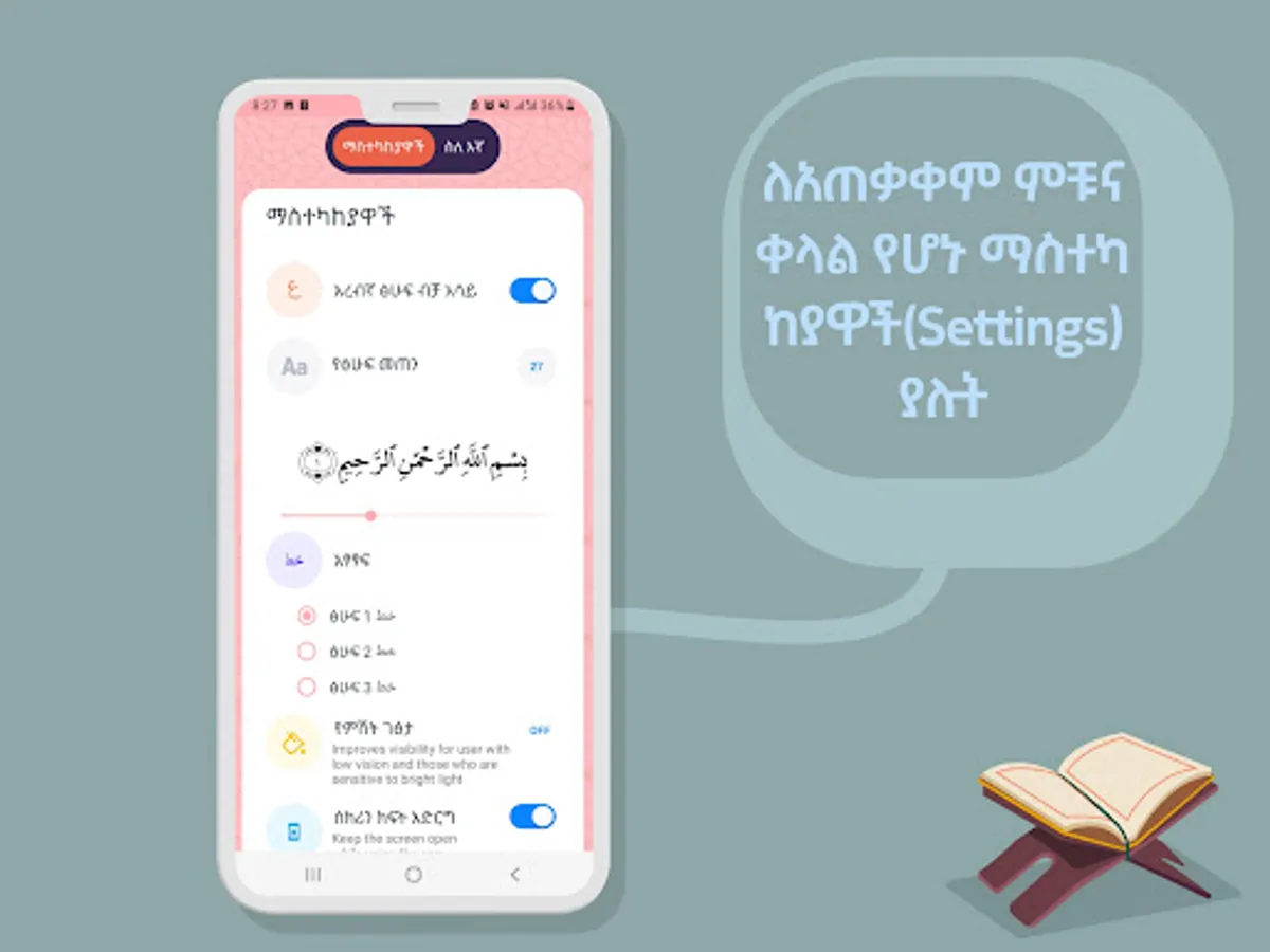 +ሌሉችም ለአጠቃቀም ምቹ የሆኑ ማስተካከያዋችን(settings) አካቶዋል።
