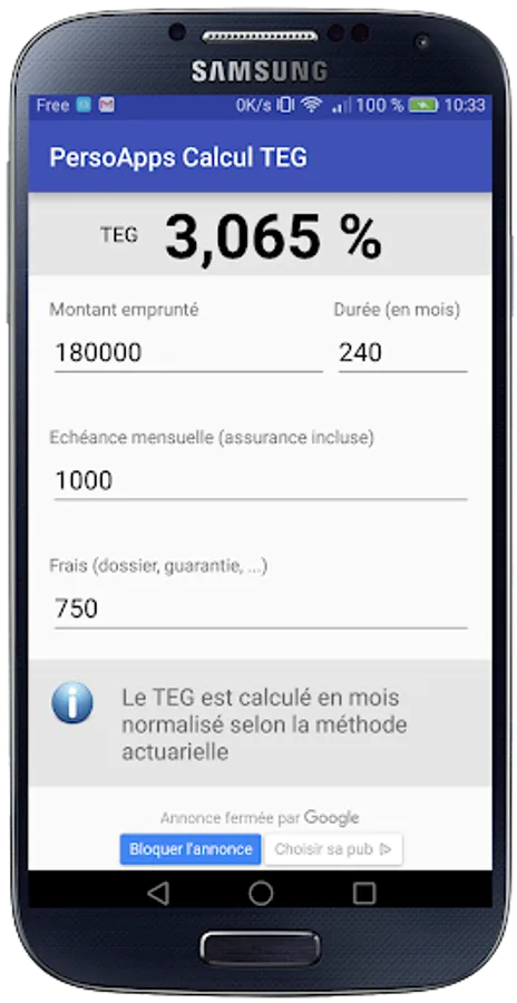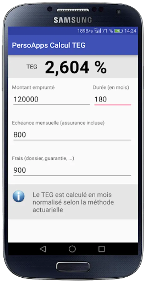 Calculation of TEG (Global Effective Rate) from the amount of time and the total cost. The APR is calculated by standardized months using the actuarial method.