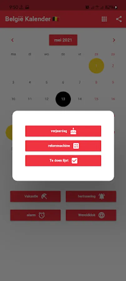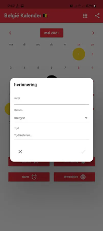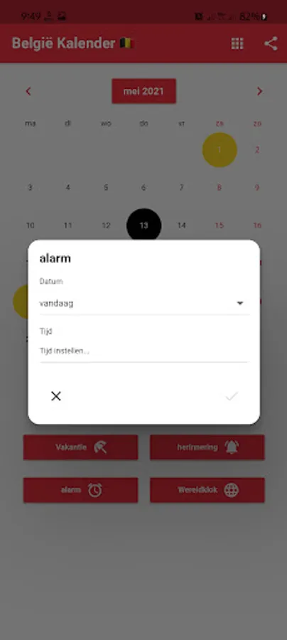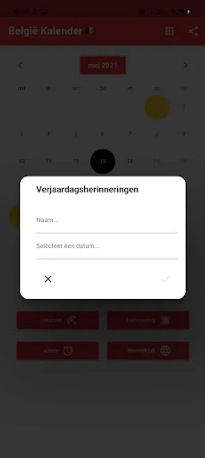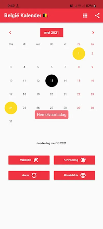 You can set reminders and get notified at the right time. At Belgium Holidays we will certainly remind you. You can register birthdays of your friends and family to be notified in advance. Useful utilities such as a calculator, world clock and alarm are included. World clock shows the time in different cities around the world. Our calendar includes a to-do list with the history of each month's origin. Belgian local time. Translator.