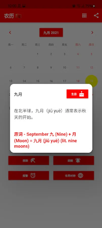 You can set reminders and get notified at the right time. We will definitely remind you on Chinese holidays. You can register your friends and family's birthdays to be notified in advance. Includes handy utilities like calculator, world clock, and alarm clock. The world clock shows the time in different cities around the world. Our calendar includes a to-do list with the origin history of each month. China local time. translator.