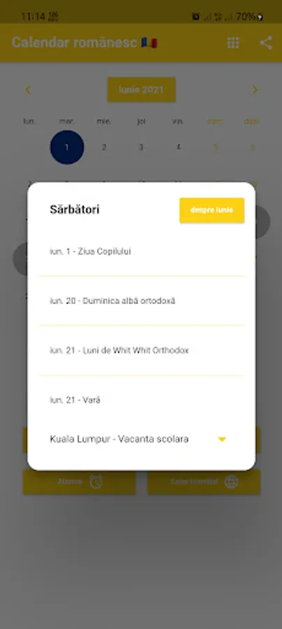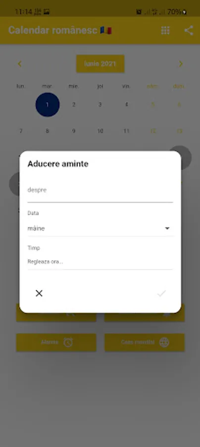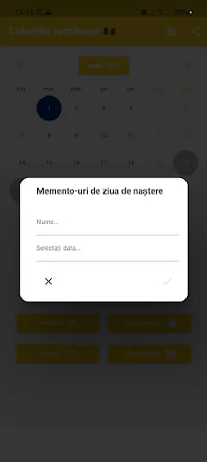 You can set reminders and receive notifications at the right time. We make sure to remind you of Qc Holidays. You can record the birthdays of your friends and family to receive advance notifications. Convenient utilities such as Calculator, World Clock and Alarm are included. World Clock shows the time in different cities around the world. Our calendar includes a list of tasks with the origin history of each month. Romania's local time. Translator.
