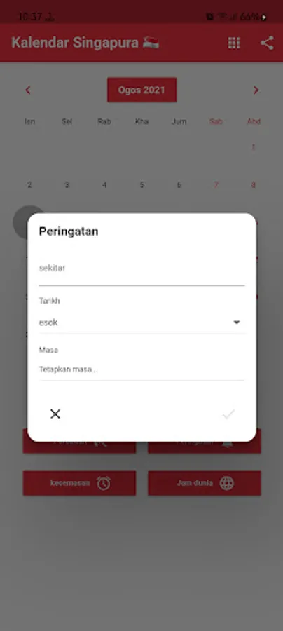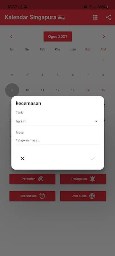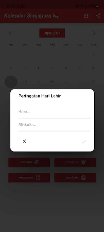 You can set reminders and be notified at the right time. We are sure to remind you of Singapore Holidays.You can register the Birthdays of your friends and family to be notified in advance.Comfortable amenities like Calculator, World Clock and Alarm are also included.World Clock shows the time in various cities around the world.Our calendar includes A List of Things to Do with the History of Origins Each Month. Singapore Local Time. Translator.