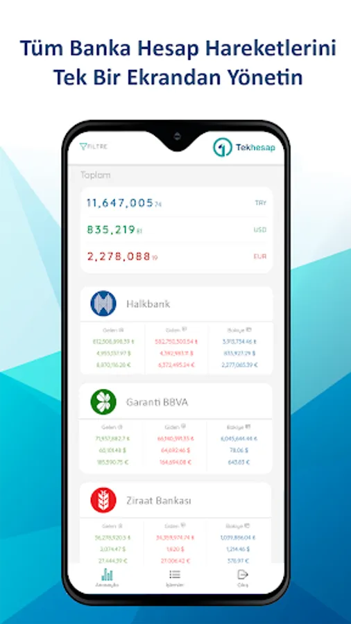 Farklı bankalardaki vadeli, vadesiz, DBS ve POS hesaplarınızı tek bir panelden yönetin.