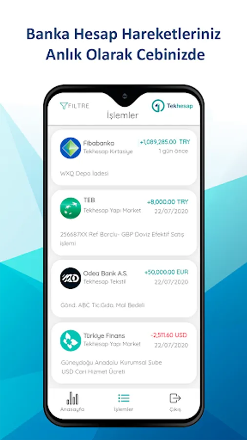 IOS ve Android uygulamalarımız ile Tüm nakit akışınızı avucunuzun içinde tutun. Kontrolü elden bırakmayın.
