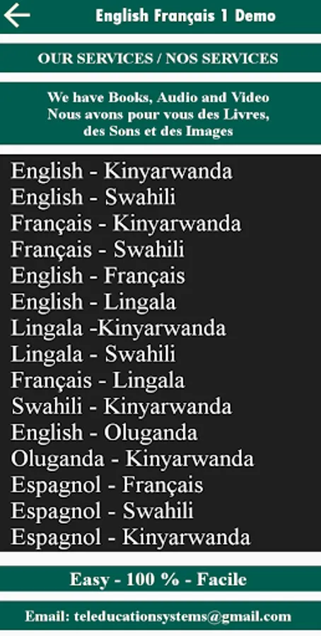 Cette Application permet d’apprendre l’ Anglais ou le Français avec facilité.