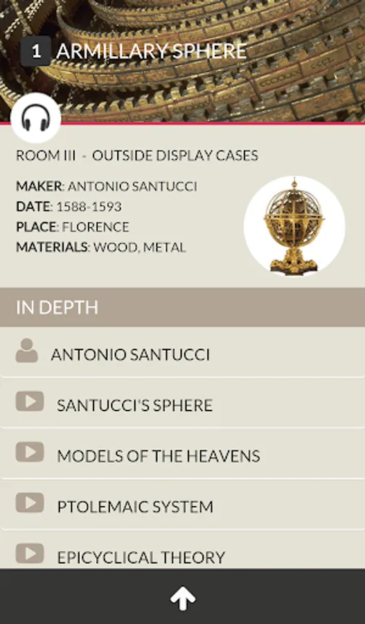 This guide will accompany your visit with audio commentary, text pages, and videos as you discover the outstanding collections of scientific instruments gathered over approximately four centuries by the Medici and Lorraine dynasties. Toward the mid-sixteenth century, Cosimo I de’ Medici formed the first nucleus of the collections exhibited in the Museum today. Highlights include all the original instruments designed by Galileo, including his only two surviving telescopes.