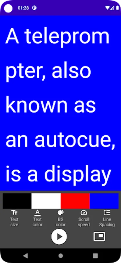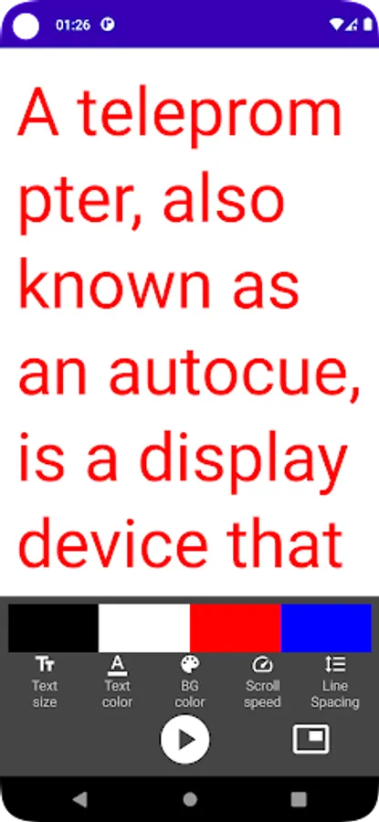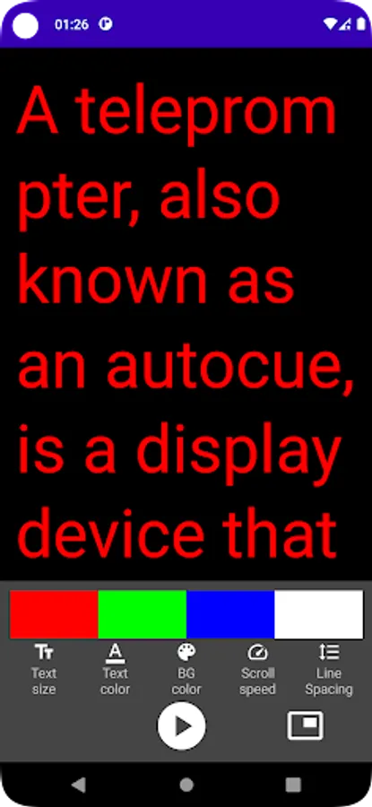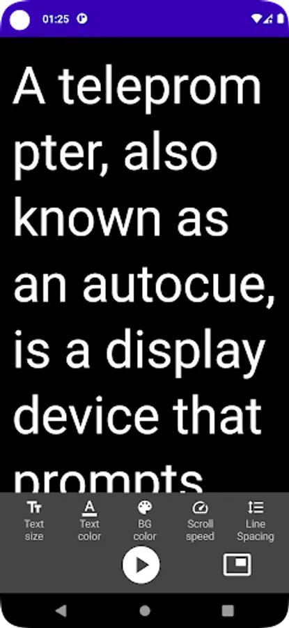 TelePrompterPro is an innovative teleprompter application designed to facilitate and enhance your presentations, speeches, and video productions. With its elegant interface and powerful features, TelePrompterPro gives you a hassle-free and professional experience.