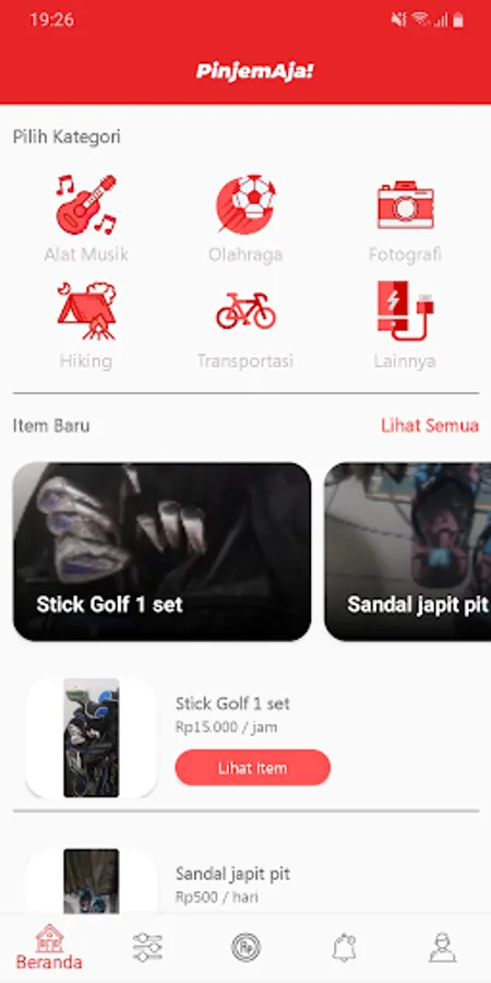 Investors can add items to lend to PinjemAja users by uploading photos and writing descriptions of items. Investors can also determine the length of time and cost of borrowing goods.