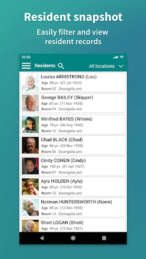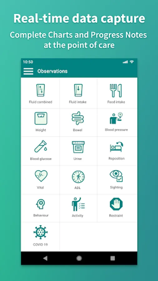 The app creates a workflow of care activities that need to be completed throughout the day, providing care staff with an easy-to-follow list to work though and helping prevent missed tasks. A user-friendly interface for a large array of charts makes documentation fast and paperless, while access to the resident record ensures important data is within easy reach at all times.
