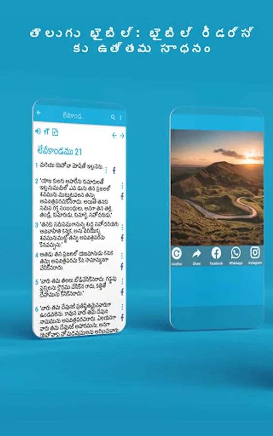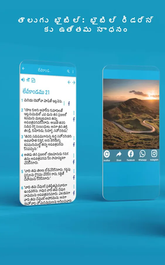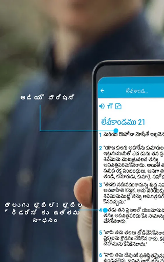 The best bible app in Telugu language for all Telugu speaking users. Customizable modern and customer-friendly design. Save your favorite Bible verses and share them with your friends. With this app, you can always have the Bible as a book or as an audio version, even offline.