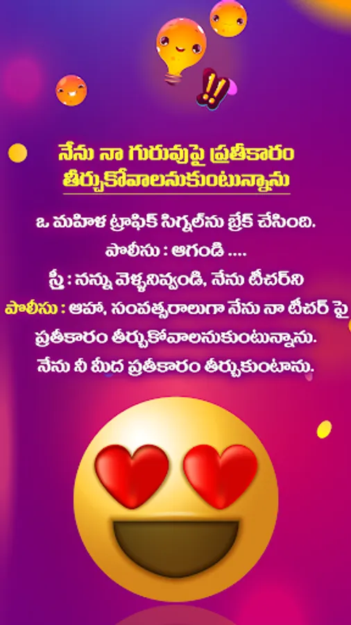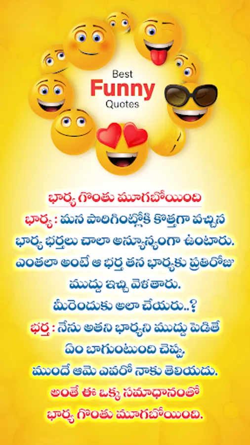 Are you ready to add more laughter and joy to your life? Look no further than our incredible Telugu Jokes Funny Quotes app! Designed to brighten up your day and bring smiles to the faces of your friends, relatives, and colleagues, this app is the ultimate source of laughter and entertainment.
