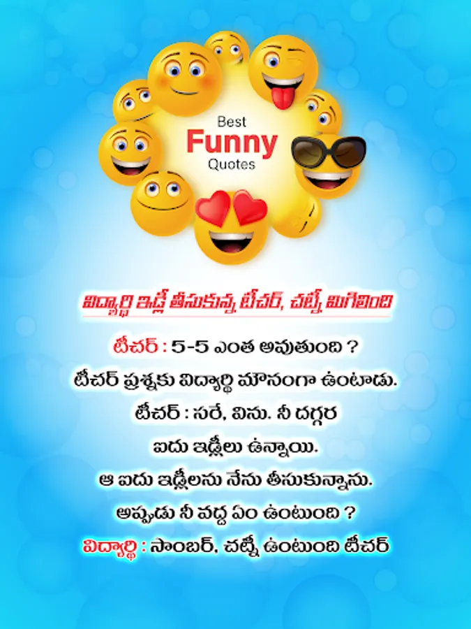 Thank you for downloading our free Telugu Jokes Funny Quotes App. We value your feedback.