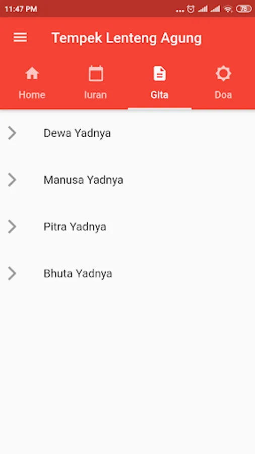 Widhya Mandala application is this application made to facilitate the management of religious activities at Tempek Lenteng Agung, which is the pengempon of Pura Agung Widhya Mandala. This application menu includes activity schedules, membership contribution status, a collection of Prayers, and a collection of Gita (Pupuh, Kekawin, Kidung).