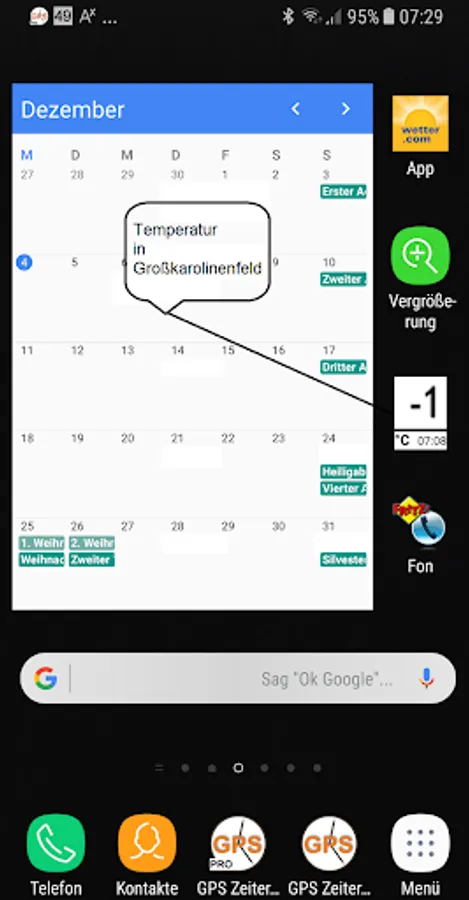 3. Add the widget 'temperature Grosskarolinenfeld' to the home screen.