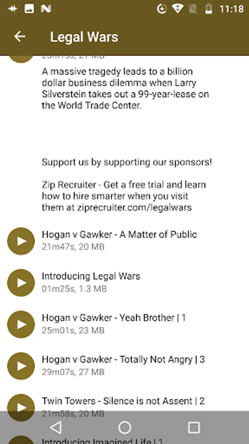 * Please note this is NOT the official application from legal war ( https://art19.com/shows/legal-wars) and legal-wars has all copyright about these provided podcasts.