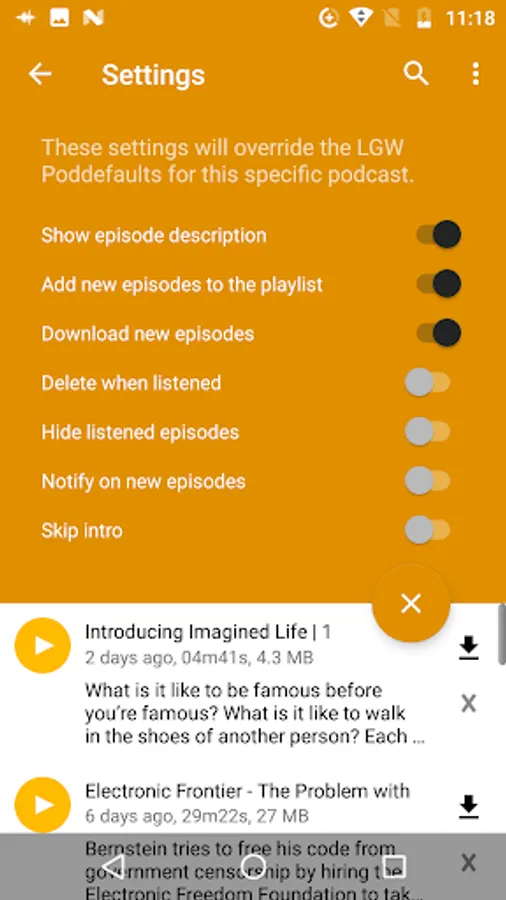 - Automatic file management: Automatic podcast download and deletion.