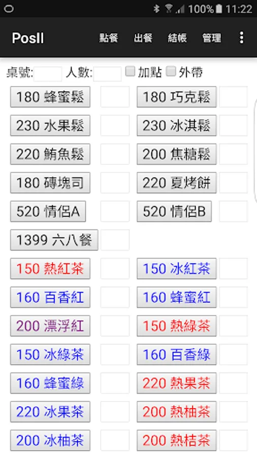 員工可點餐、出餐、結帳
