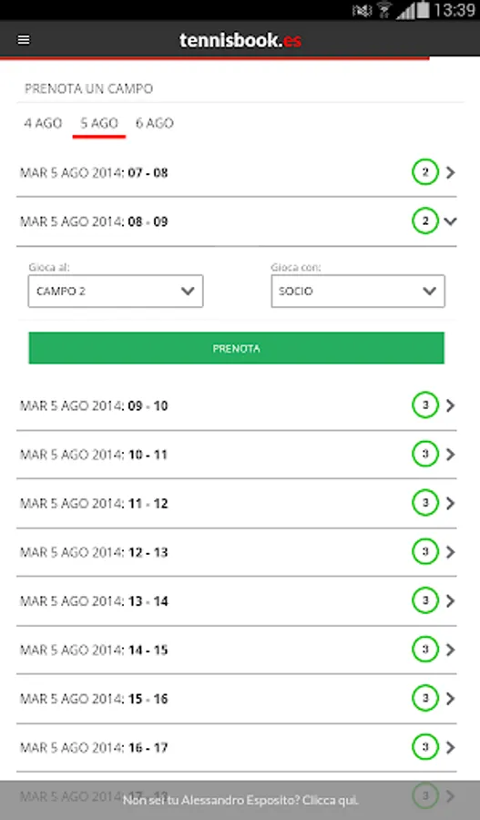 tBook is a free application for managing reservations of tennis courts. With tBook book your tennis court by phone or tablet and you can:
