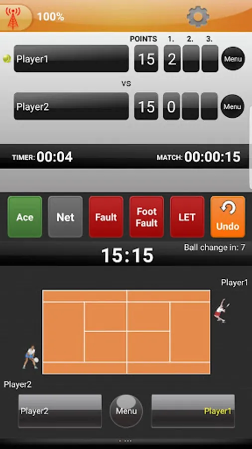 o Few different types of scoring plus custom option. Three sets in a match maximum in this version.