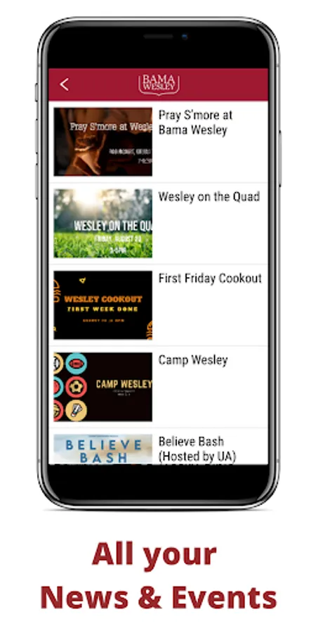 Bama Wesley is a UMC college ministry at the University of Alabama. Download the Bama Wesley App to stay connected, watch videos online, and even sign up for events and news notifications!