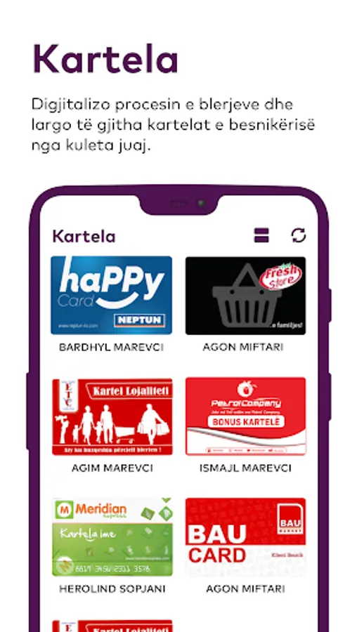 Bashkohuni me përdorues të Kartela dhe ruani të gjitha kartelat e tua të besnikërisë në një aplikacion falas.