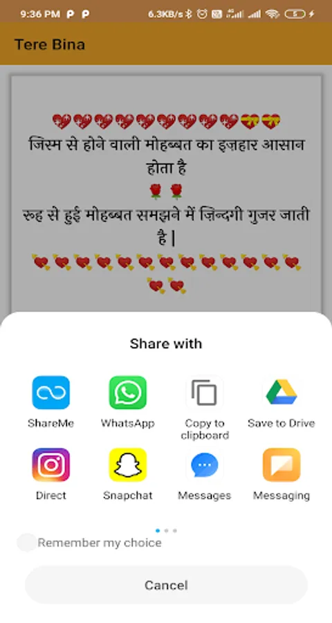 3) Easily share or status with or email or Hike or Telegram & so on...