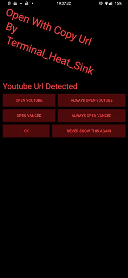 It will also detect youtube links and allow you to open them in youtube. If you don't need this just press "Never show this again" and the app will work as before.
