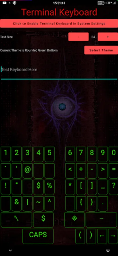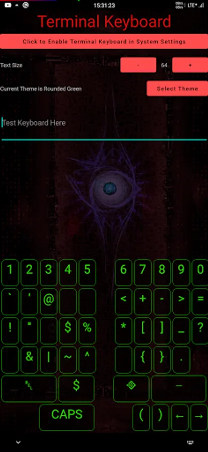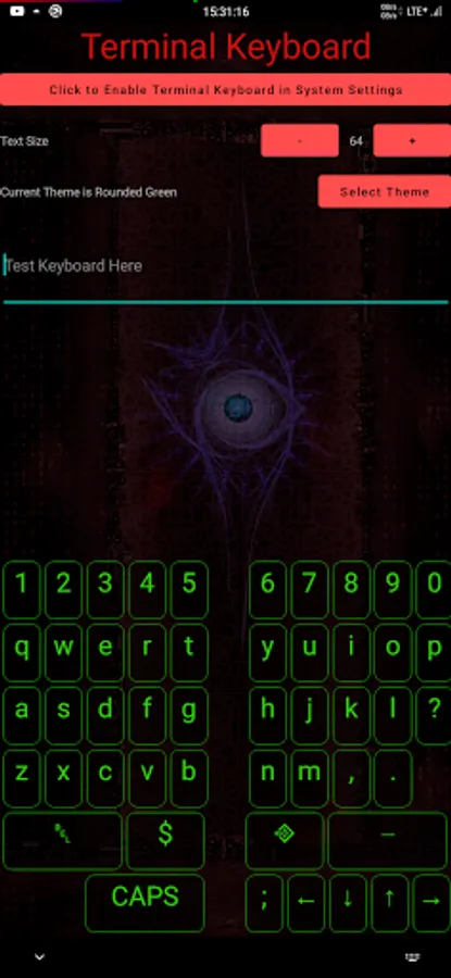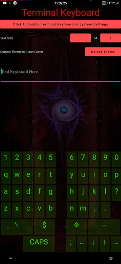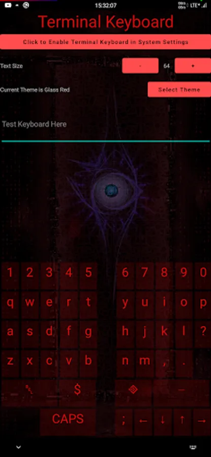 The App allows you to change text size, theme and has a shortcut to enable the keyboard in settings.