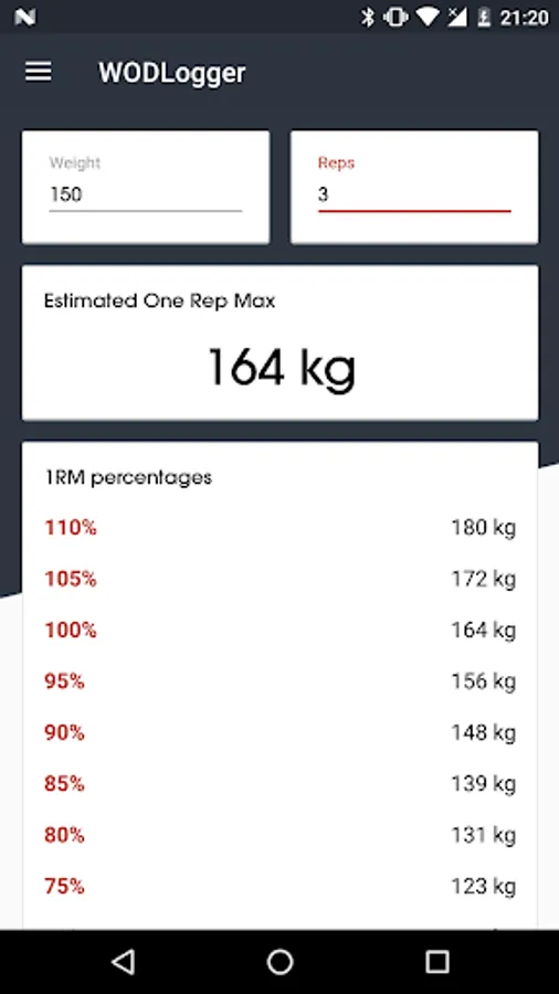 We include 7 different formulae to help you to calculate your rep max. (Brzycki, Epley, States, Lombardi, Mayhew and others)
