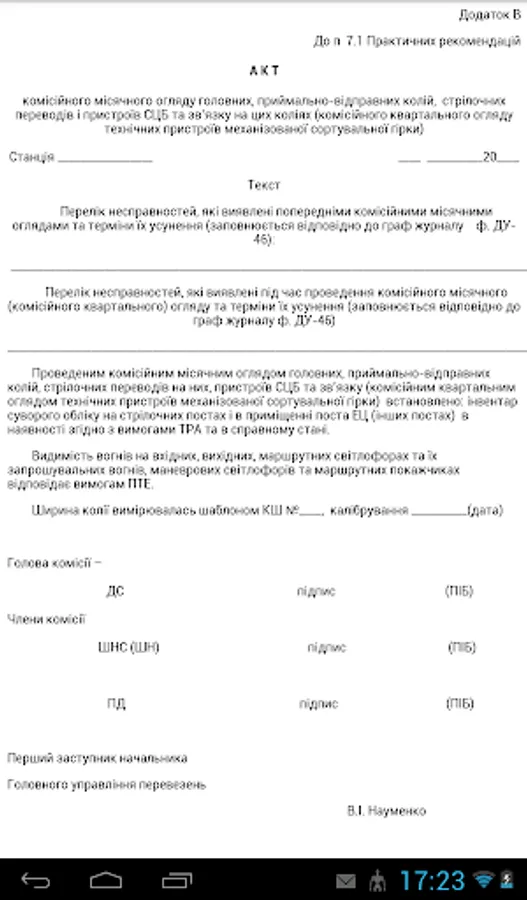 SUBSTITUTE: recommendations on the commission Month View tracks, switches, SCB devices and communications contact network of railways stations Ukraine DM-0032, approved by Ukrzaliznytsia from 09.11.2000 number 514-C